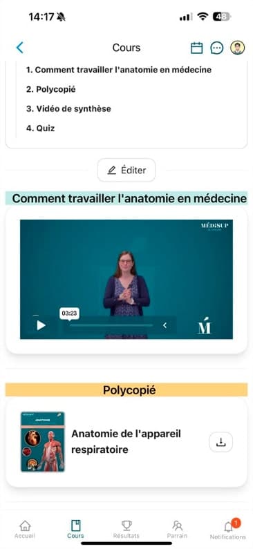 - Une application mobile, Médisup Connect , disponible 24h/24h pour apprendre et réviser quand vous voulez avec des quizz et QCM en ligne.